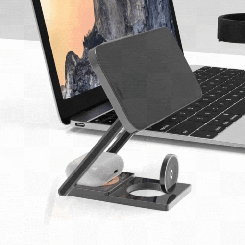 スマホだけを充電したいときは折りたたんで使用でき、3ガジェット同時に充電したいときは、まるでスマホスタンドのようにスタイリッシュに充電してくれます。