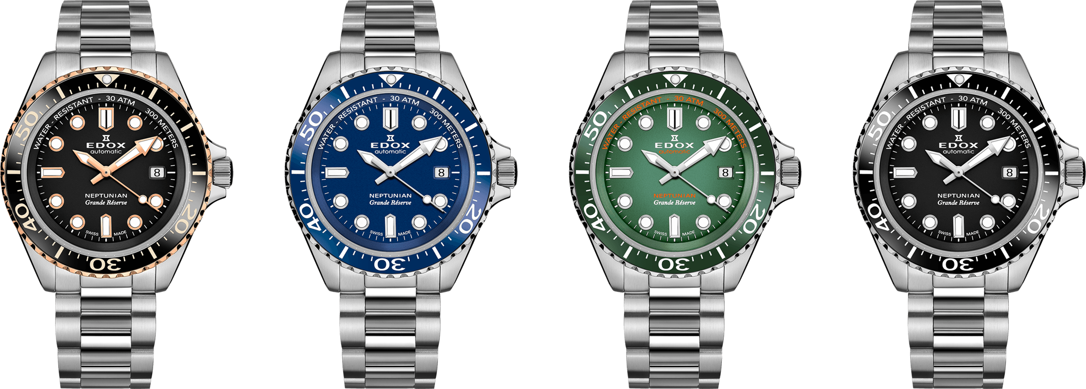 本キャンペーンが開始する10月20日(金)に、『ネプチュニアン グランデ リザーブ デイト オートマティック』の新作4色も発売いたします。この機会に、ぜひ『ネプチュニアン』コレクションをご検討ください。