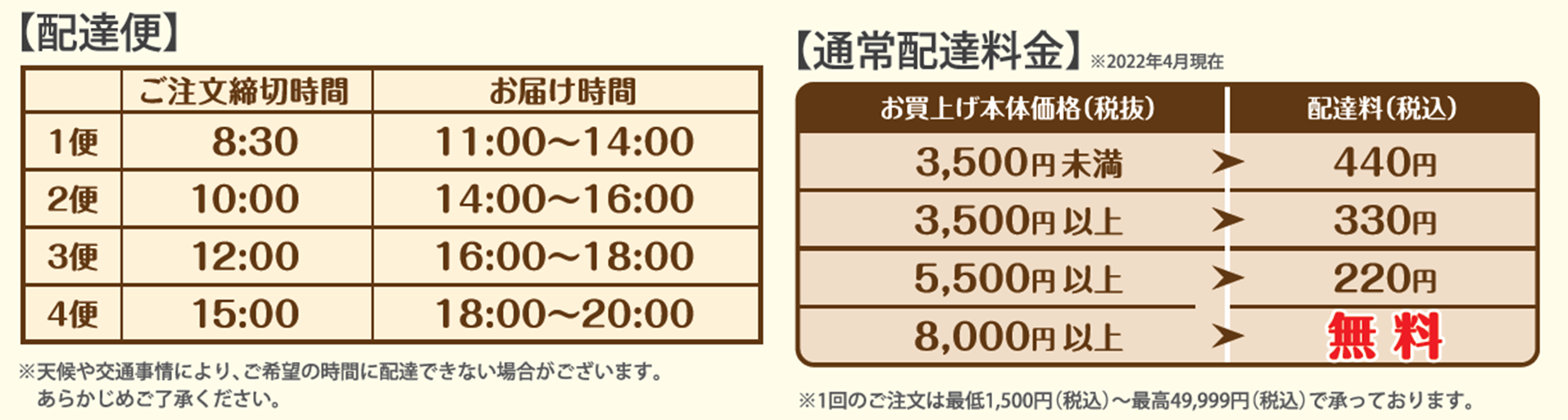 ■配送エリア ■お届け時間 ■通常配送料金