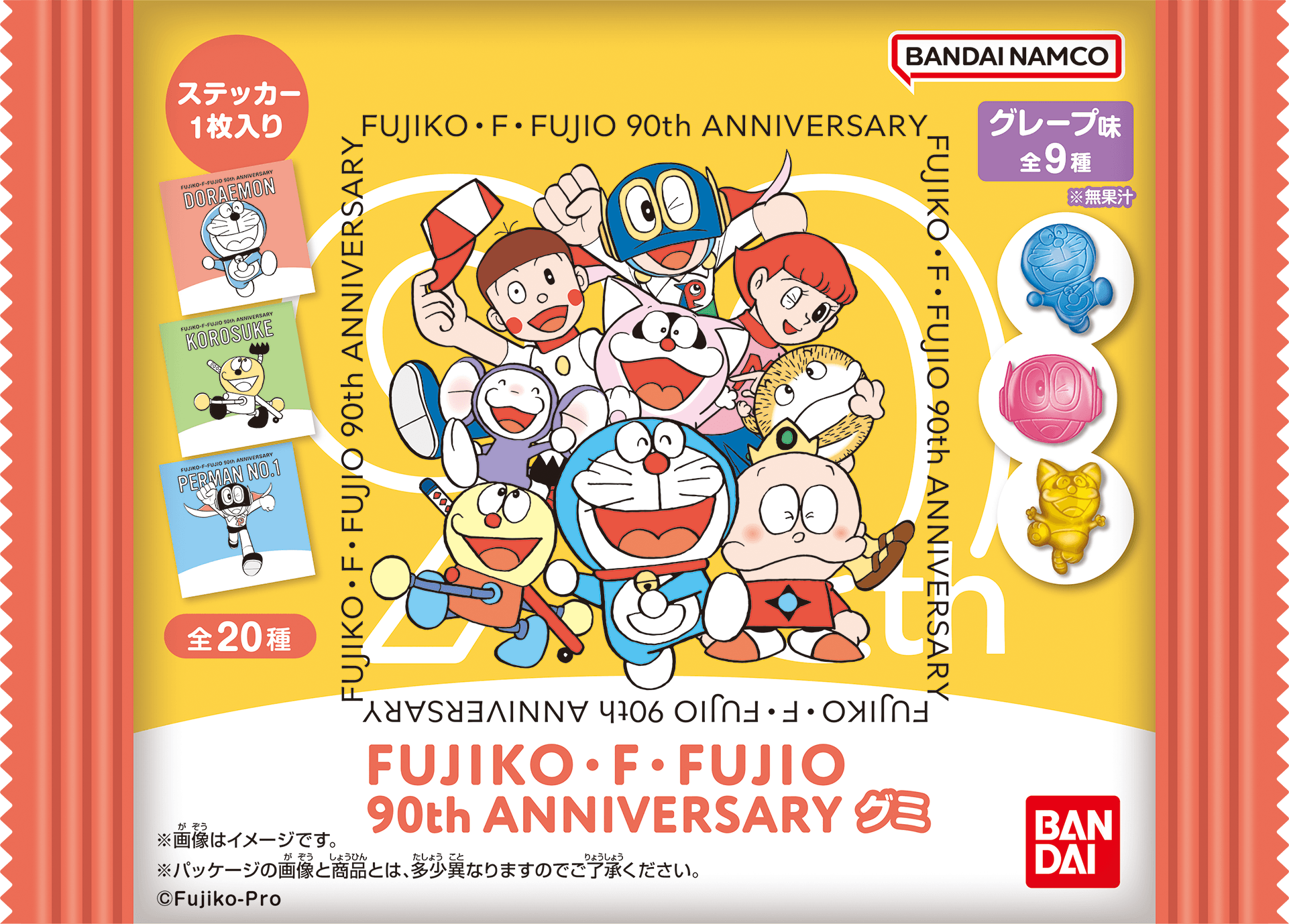藤子・F・不二雄生誕90周年記念! 藤子・F・不二雄キャラクター達の 記念アートステッカーが付属したグミ発売