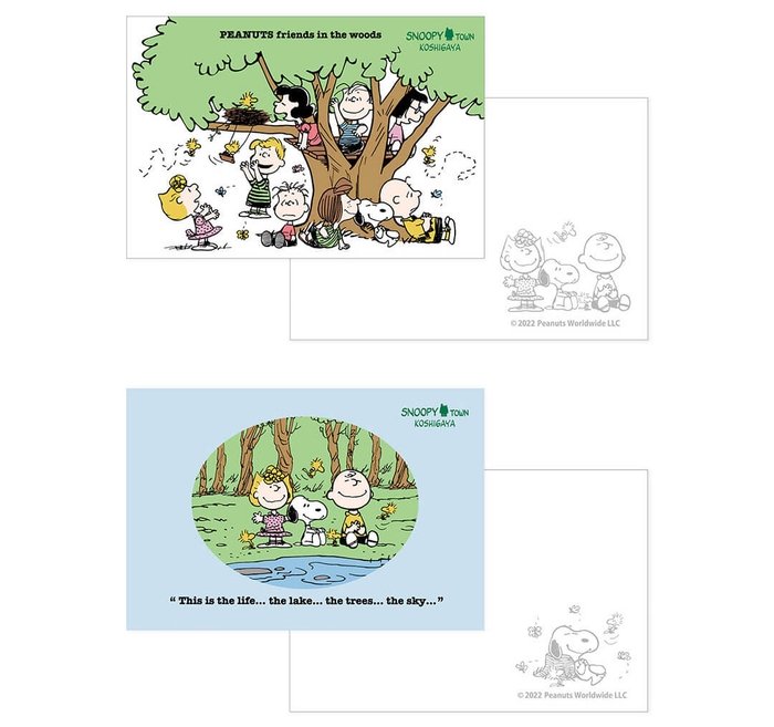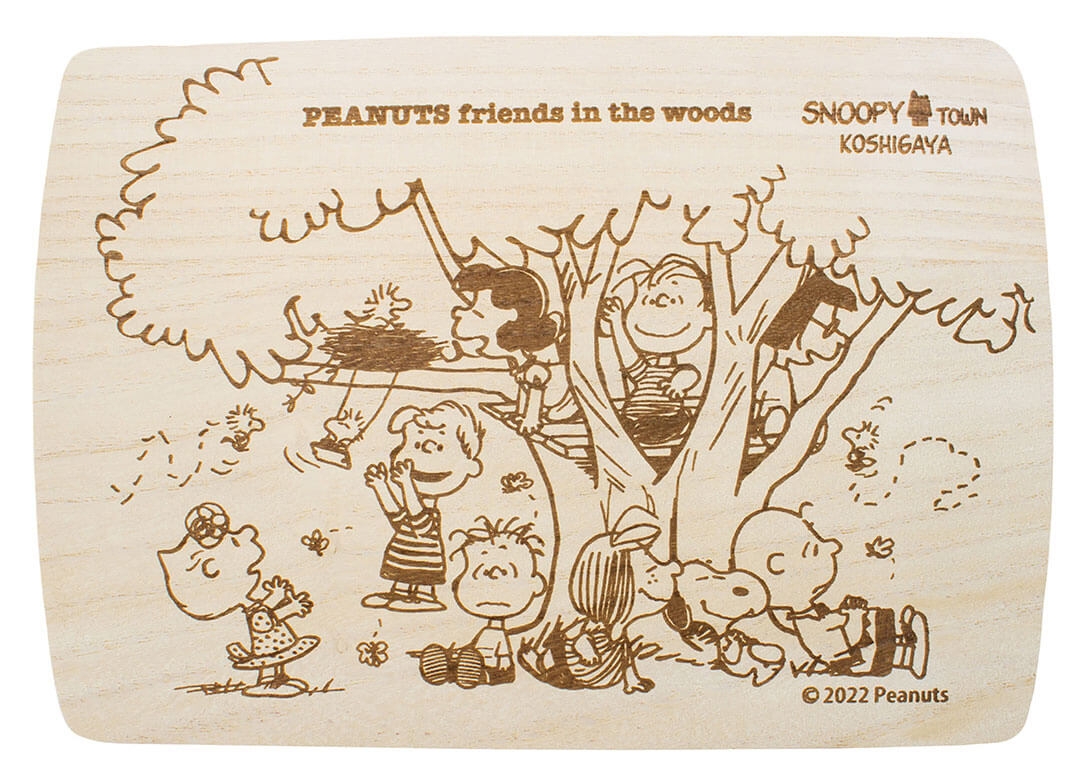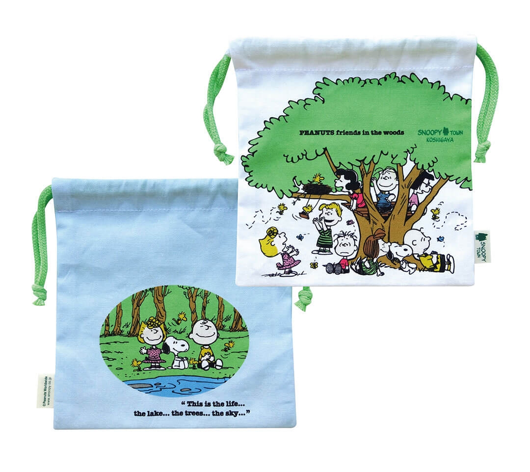 また越谷レイクタウン店限定オリジナル商品のテーマは「PEANUTS friends in the woods」 。PEANUTSの仲間たちが、大きな木の下で楽しく、くつろぐシーンをデザインしました。