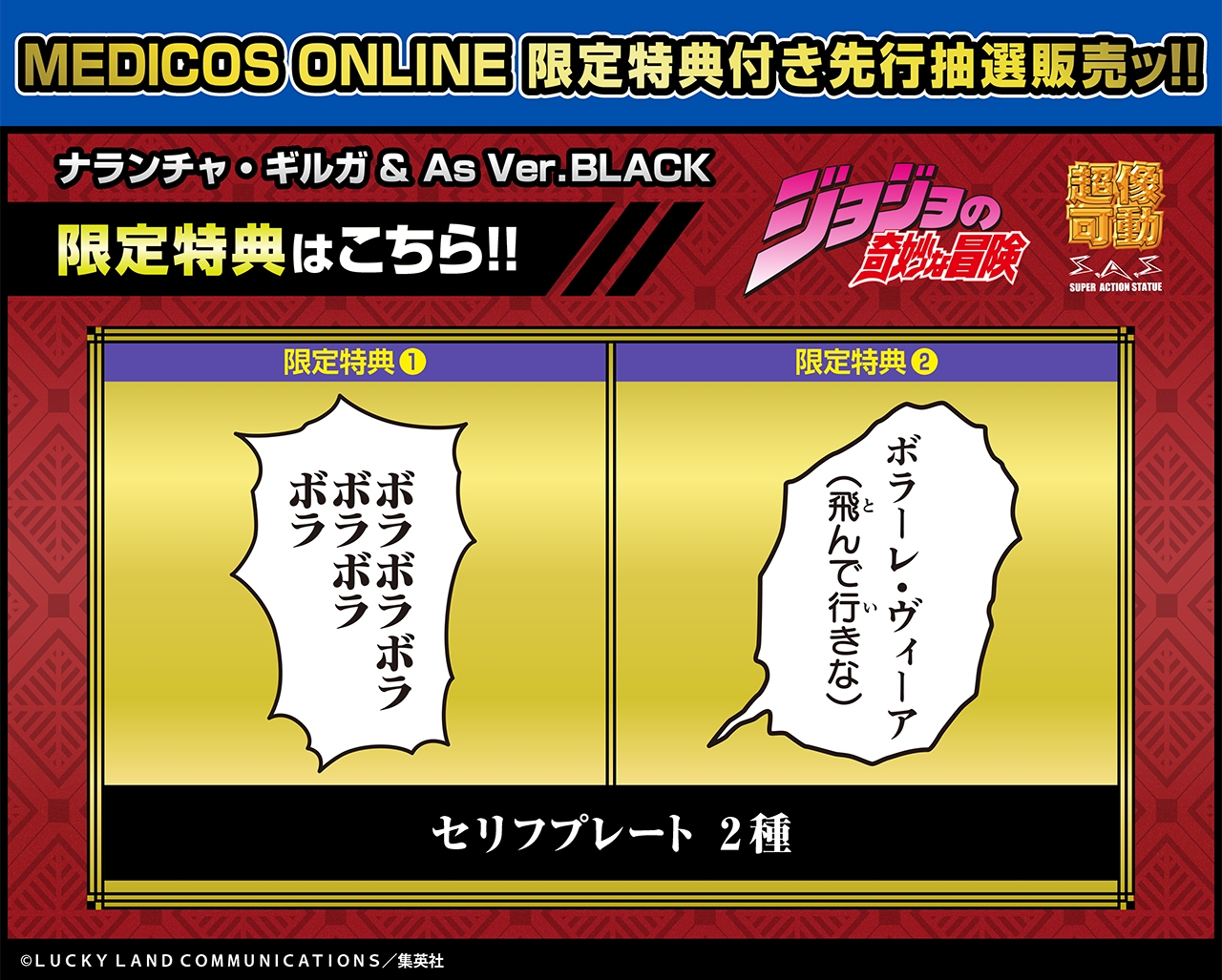 ※後日、限定特典が付属していない超像可動「ナランチャ・ギルガ&As Ver.BLACK」を一般販売させていただく予定です。