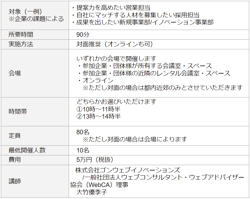 一般社団法人ウェブコンサルタント・ウェブアドバイザー協会(略称:WebCA、代表理事:権 成俊)は、一般企業向けに、独自のフレームワーク「AB3C」の使い方を学ぶ出張セミナーを令和6年9月5日(木)開始します。