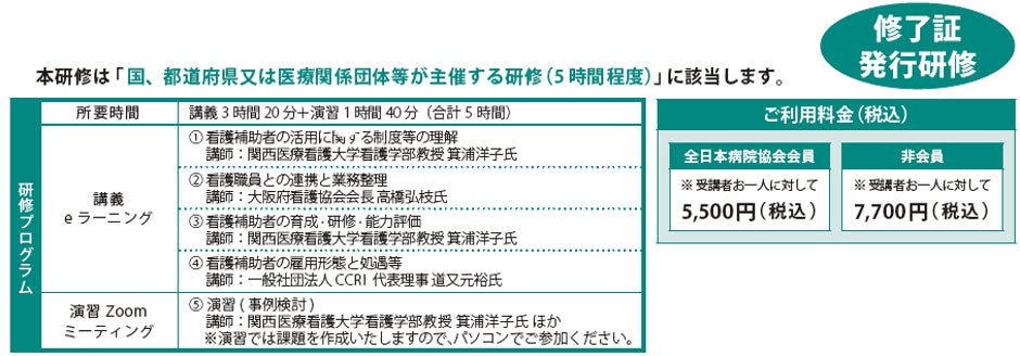 受講した者であること。ただし、看護補助者が受講する研修内容については、看護補助者が