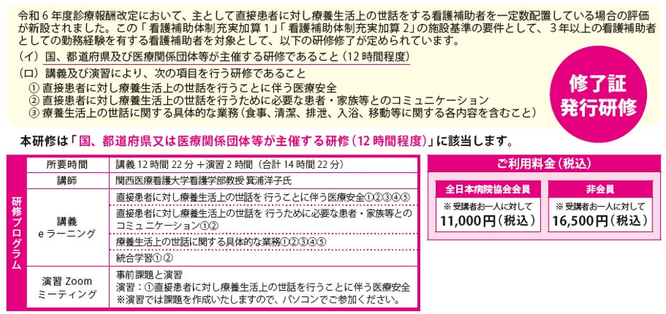 \看護補助者向け研修/「直接患者に対するケアを担う看護補助者の配置の評価」に係る研修である、看護補助者への適切な研修『身体ケアを行う看護補助者のための実務研修』申込受付を開始いたしました!