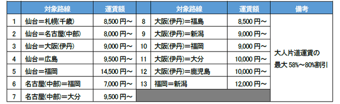 片道運賃の最大80%OFF!大変おトクなこの機会にぜひご利用ください。