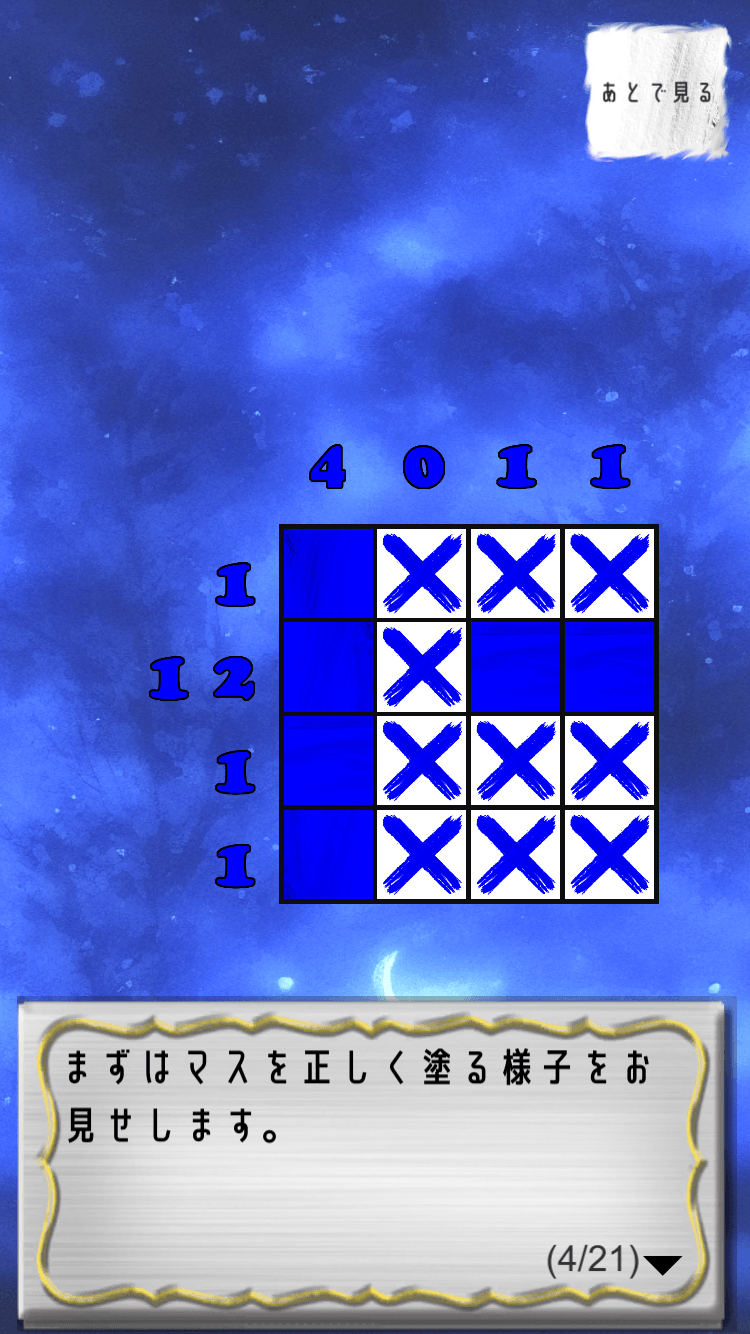 今までお絵かきパズルに慣れていない方でも、簡単かつ学習しながら問題を解くことができます。