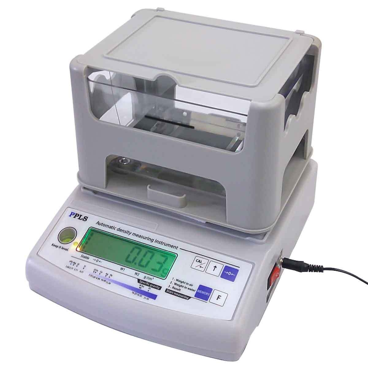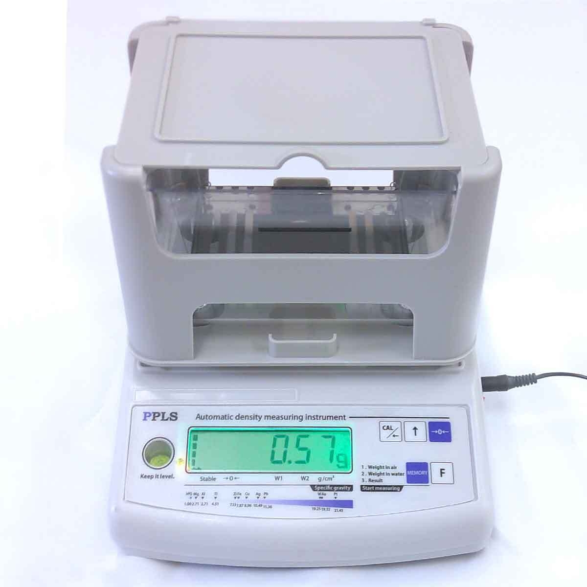 「PPLSデジタル比重計」は、電子天秤と水槽が一体構造となっており、測定対象物の空気中重量と水中重量を測定し、アルキメデスの原理を使って物質の比重を測定することができる電子天秤です。