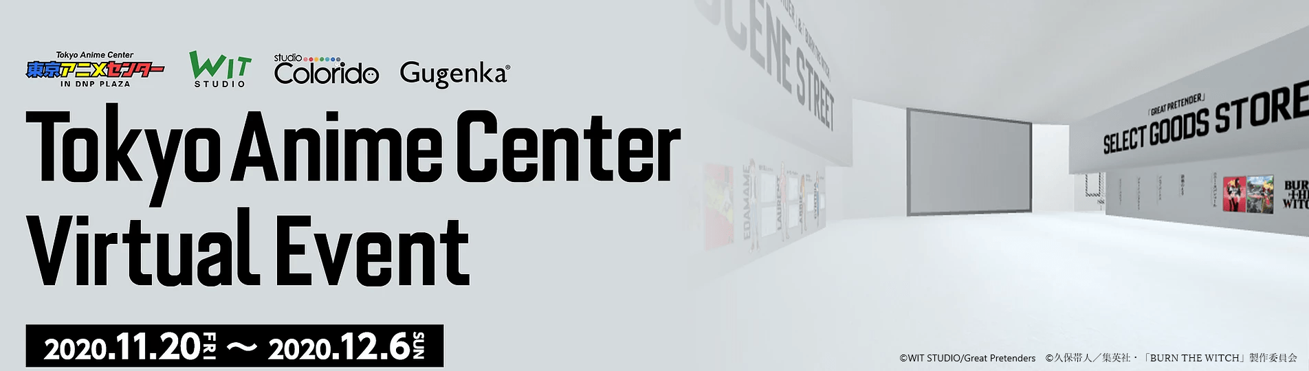 大日本印刷株式会社(DNP)が運営するクリエイター共創サービス【FUN'S PROJECT】は、仮想空間上に東京アニメセンター in DNPプラザのバーチャルイベント会場を設置し、時間や場所を気にせずアクセス可能なTokyo Anime Center Virtual Eventを開催します。その第一弾として、2020年11月20日(金)~2020年12月6日(日)の日程で「WIT STUDIO×studio Coloridoクロストーク」を開催いたします。それに伴い、カスタマイズグッズのECサイト【FUN'S PROJECT MARKET】にて、TVアニメ「GREAT PRETENDER」オリジナルグッズの販売を開始します。