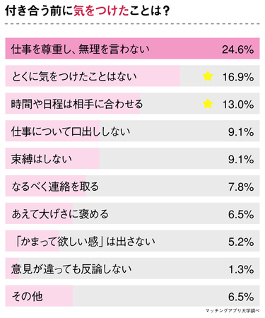 付き合う前に気をつけたこと1位「仕事を尊重しムリを言わない」