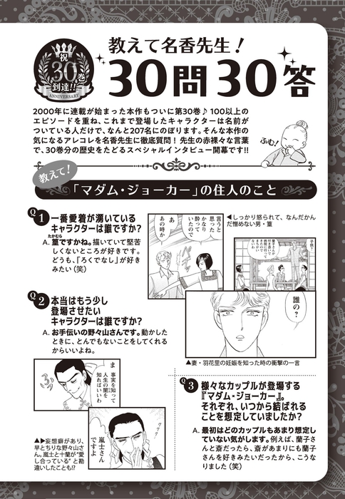 30巻目の大発見! 先生の赤裸々な言葉で語られる『マダム・ジョーカー』の秘密!! お気に入りのキャラクターは、まさかの…。