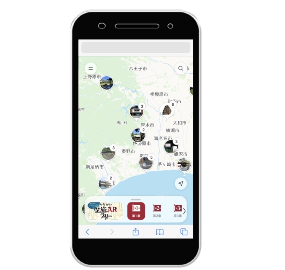 神奈川県では、周遊観光を促進する取組として、県内にある様々な時代の遺跡や史跡を巡るとともに、チェックポイントにおいてAR技術により当時の様子を再現した3Dモデル(ARコンテンツ)を出現させるスタンプラリーを開催します。