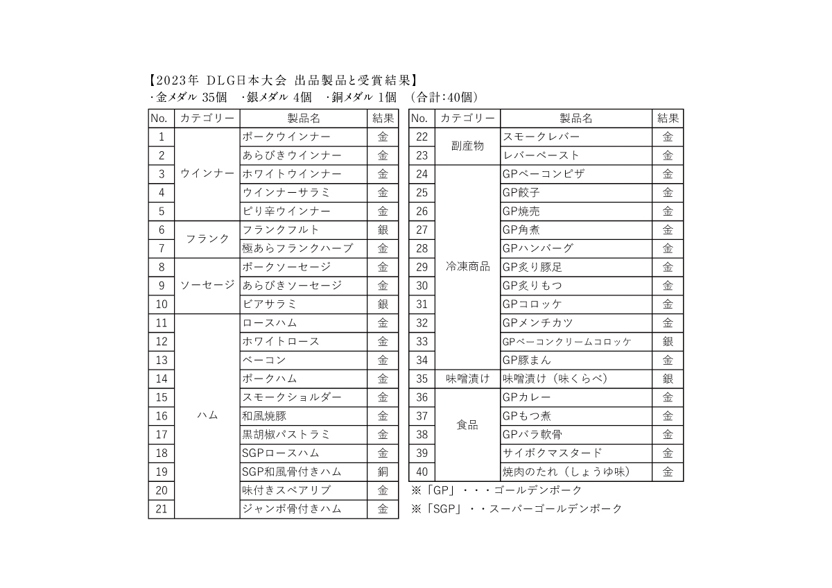 2023年 DLG日本大会 出品製品と受賞結果