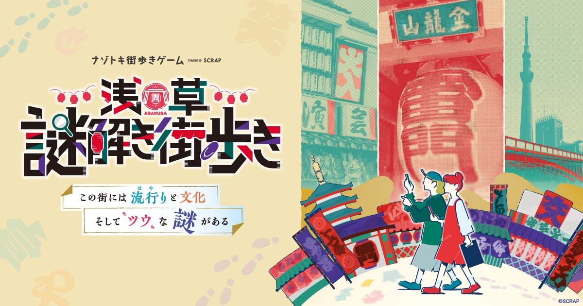 株式会社SCRAP(所在地:東京都渋谷区、代表社員:加藤隆生)は、“ナゾトキ街歩きゲーム”の新作『浅草謎解き街歩き』を2024年3月14日(木)より開催することを発表いたします。
