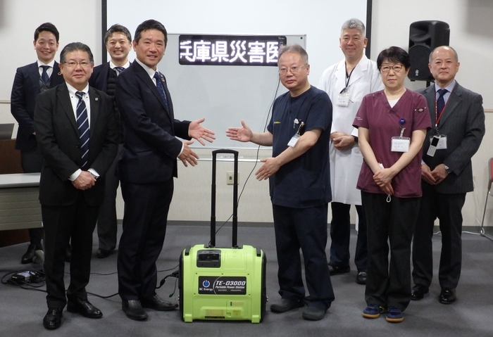 株式会社タカミエンジは3月12日に兵庫県災害医療センターへ ポータブル蓄電池「BCエナジー」を寄贈