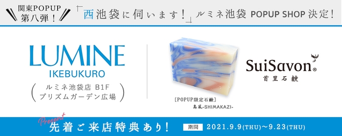 2021年9月9日(木)~9月23日(木) 東京都豊島区西池袋にある「LUMINE ルミネ池袋」にて、期間限定ポップアップショップを出店いたします。