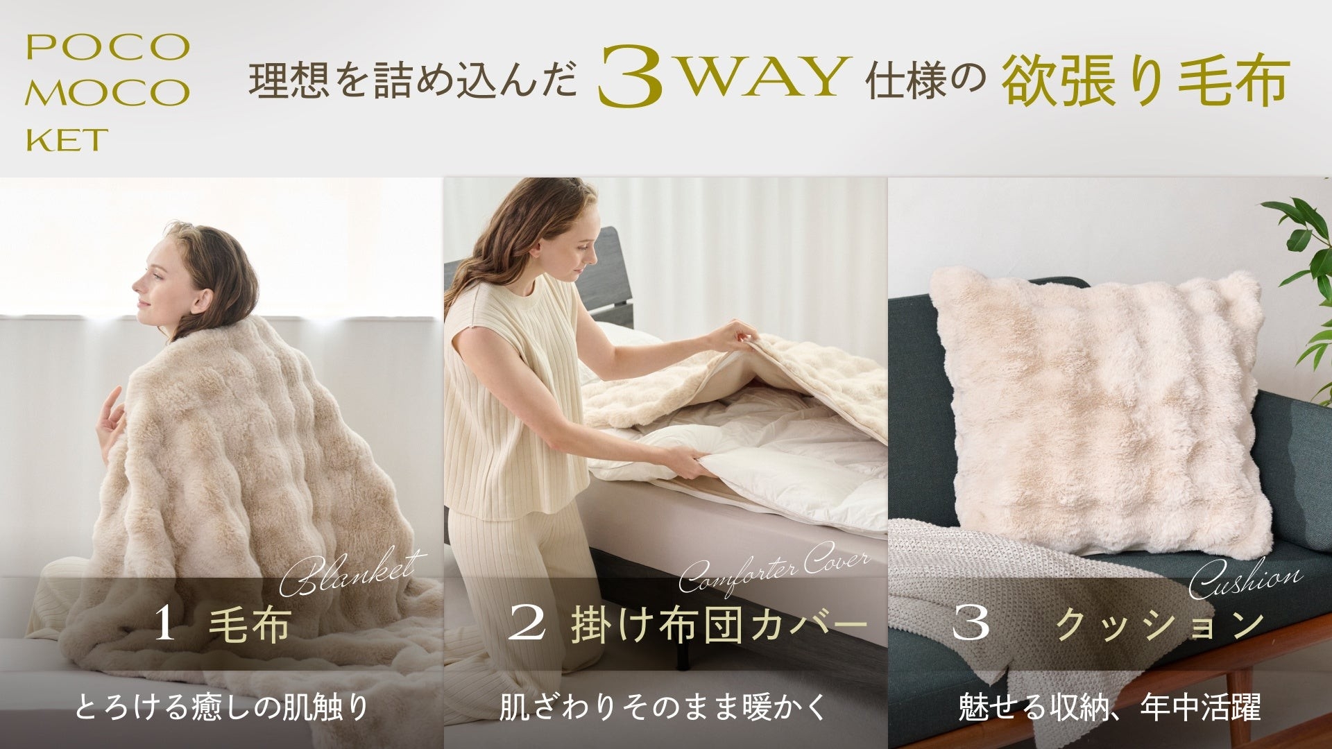 〈1枚3役、毛布・カバー・クッションに使える万能ケット〉