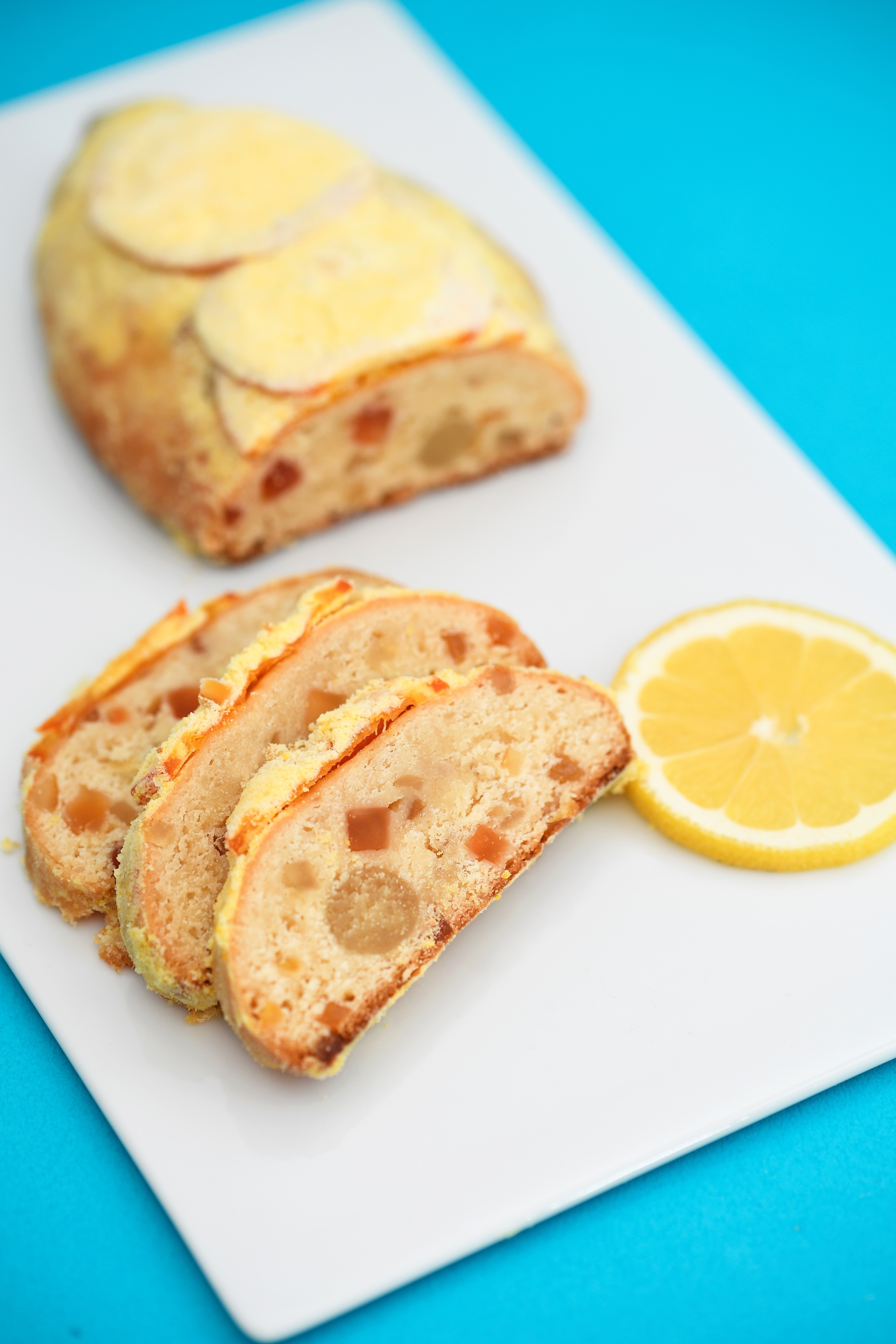 クリスマス定番の焼き菓子“シュトレン”を、夏らしくレモン風味にアレンジした、夏季限定の人気ロングセラーヒットアイテム。ドライフルーツ、ピスタチオ、マジパンを入れてレモンの酸味を程よくきかせた、爽やかな“夏のシュトレン”です。