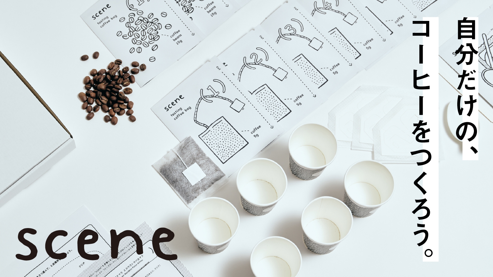 つまり、最高のコーヒーとは想いの込もったその人だけのものだと気付き、誰でも自分だけのコーヒーを作ることができれば、みなさんに最高のコーヒーを楽しんでいただけるのではと考え、商品開発をはじめました。コロナ禍で開催できなくなったブレンド作りのワークショップのノウハウを応用し、ご自宅で誰でも簡単にできるように作られたカスタムブレンドキット『scene』は、あなただけの特別なコーヒーを提供します。