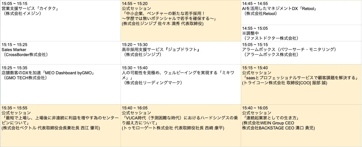 株式会社RevComm/IRISデータラボ株式会社/DORIRU株式会社/株式会社アイドマ・ホールディングス/CrossBorder株式会社/GMO TECH株式会社/株式会社リーディングマーク/ドーモ株式会社/ファストドクター株式会社/アラームボックス株式会社/株式会社ザオリク/琉球アスティーダスポーツクラブ株式会社/株式会社UKABU/株式会社イメジン/株式会社スタメン/株式会社gamba/株式会社Retool/株式会社RXプロ/トゥモローゲート株式会社/株式会社ジンジブ/LUF株式会社/株式会社morich SOICO株式会社/星のリゾート/株式会社JY LINK/モノバンドル株式会社/MetaTokyo株式会社/一般社団法人ジャパン・コンテンツ・ブロックチェーン・イニシアティブ/株式会社フジテレビジョン/monoAI technology株式会社/株式会社みらいワークス/ChatWork株式会社/株式会社StartPass/伊藤忠テクノロジーベンチャーズ株式会社/株式会社ウィステリア/株式会社GC インフィニティー
