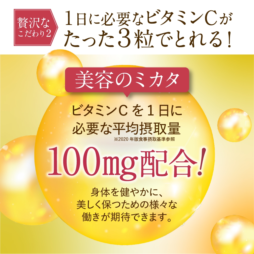 ビタミンCを1日に必要な平均摂取量約100mg配合。(※2020年版食事摂取基準参照)