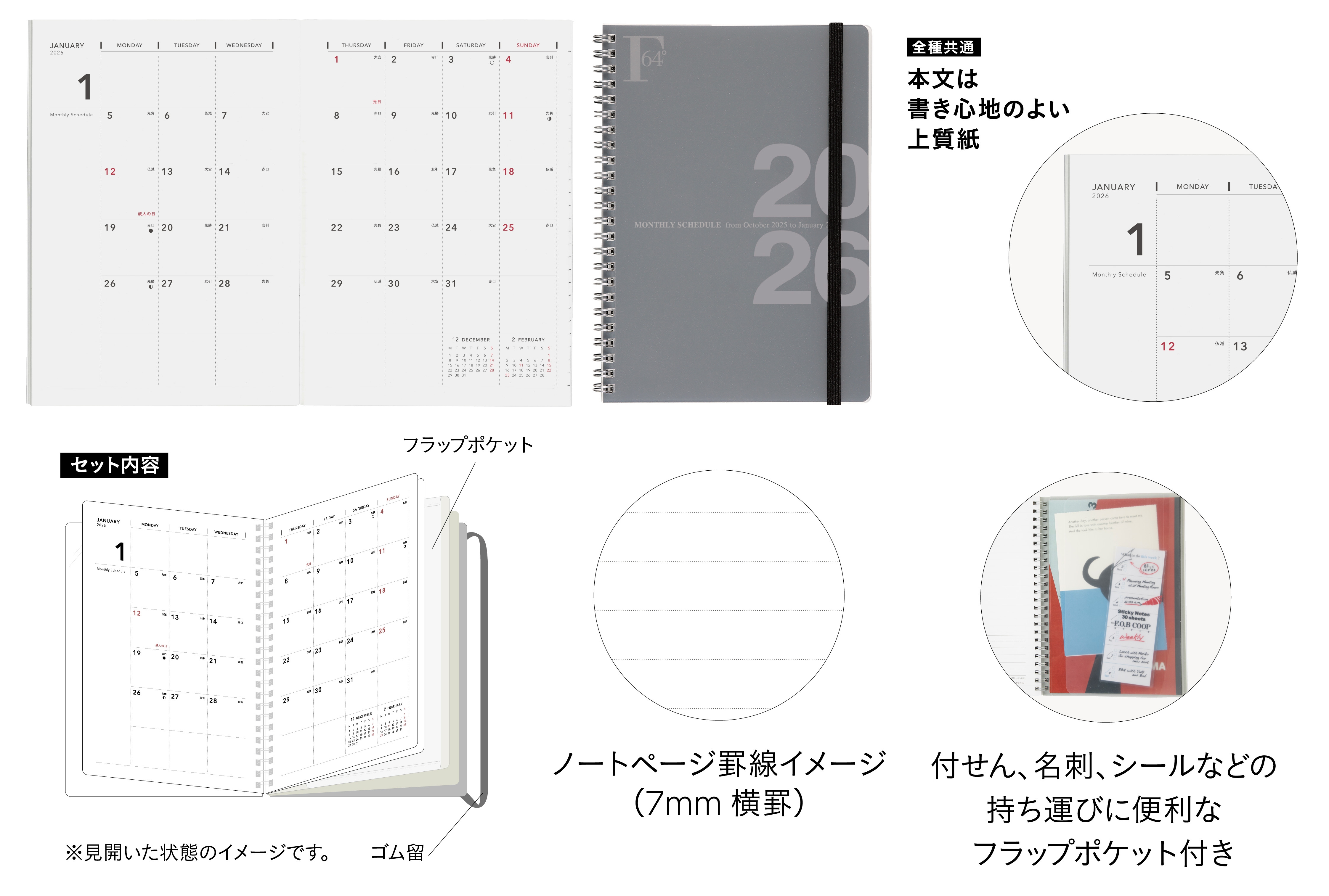 ノートタイプ 薄型・軽量で持ち歩きに便利なマンスリーダイアリー