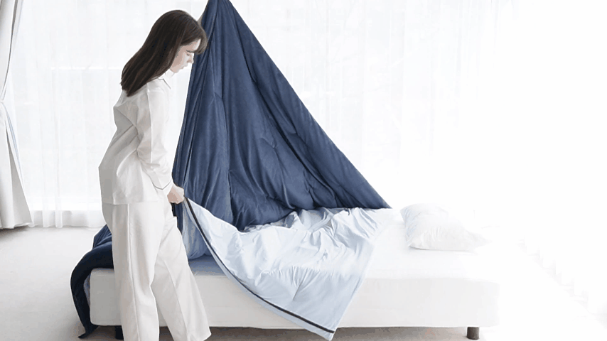 一方で、布団は春夏秋冬で最適な厚さ・素材を選ぶべきアイテム。本来は1年中同じものを使うのが難しいからこそ、季節ごとに収納と出し入れを繰り返す面倒が発生していました。