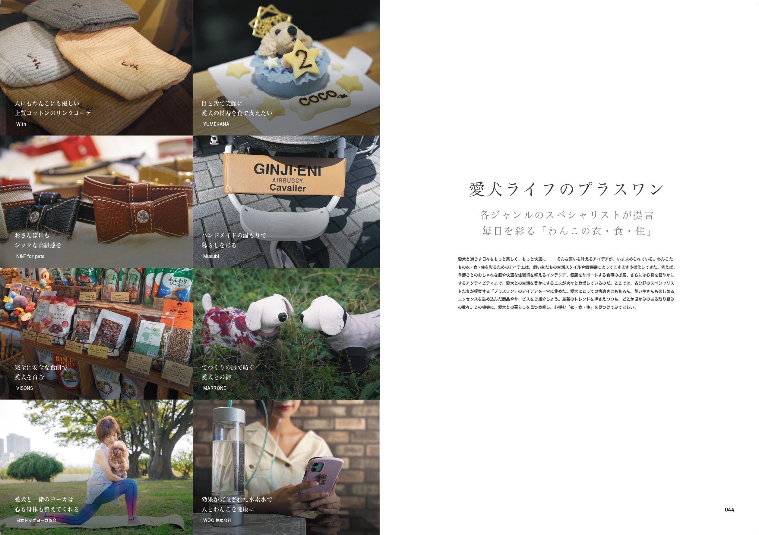 愛犬と楽しめる注目スポットやドッグイベント向けのお出かけコーデ、厳選されたグッズの紹介など、本誌ならではの魅力的なコンテンツを多数掲載しています。