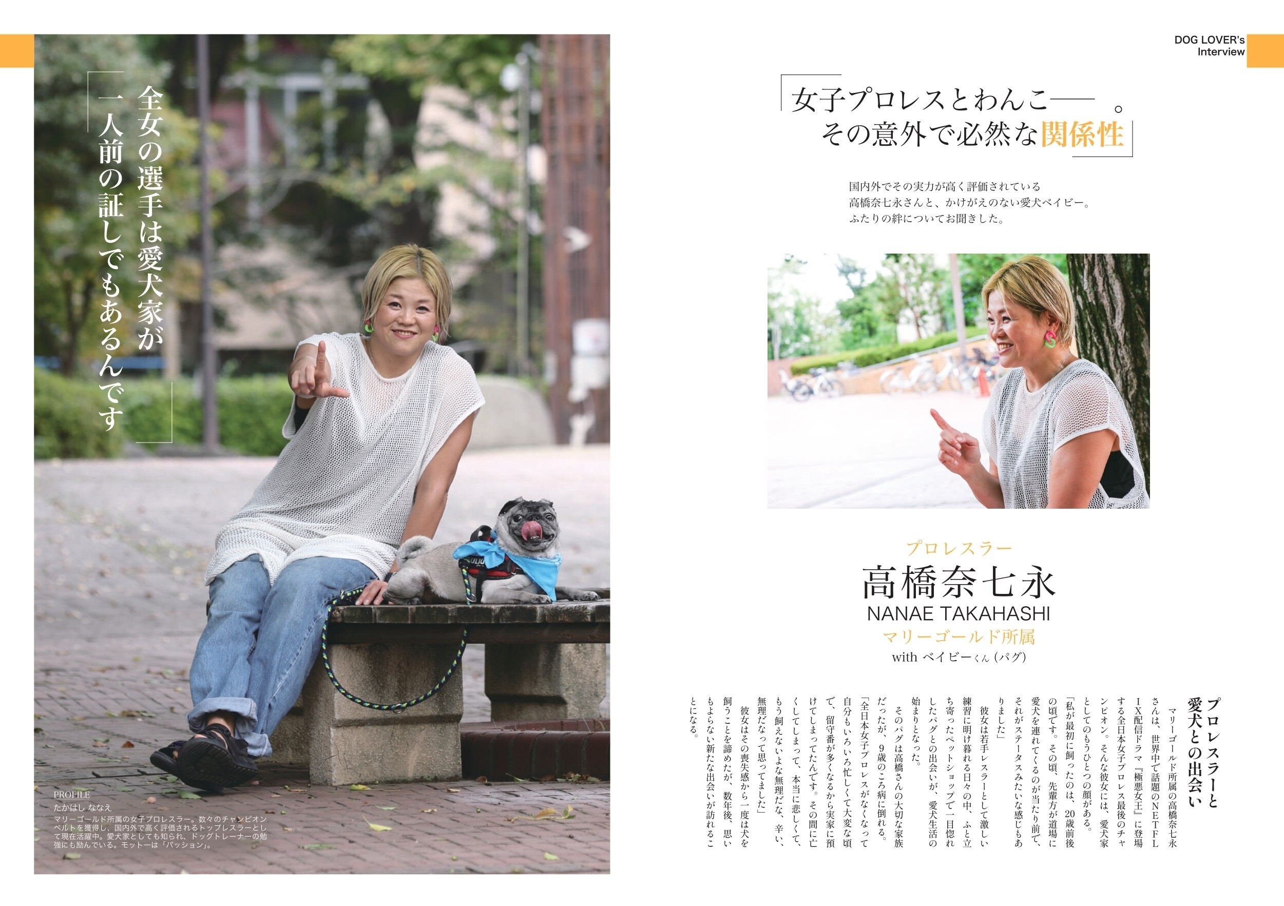 女子プロレスラーの高橋奈七永さんやペット系インフルエンサーのかちゅまるさんによるインタビューを掲載しています。