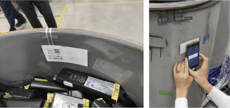 これらに対応するため、エンビプロとサトーは、使用済みLIBの回収から再資源化までの処理履歴が確認可能になる、データ取得の実効性と実用性を検証しました。処理過程では、温度と衝撃の情報を継続的に記録して状態をモニタリング。リサイクル工程では在庫管理、工程内ステータス記録、各種履歴をトレースできるデジタル情報を取得しました。