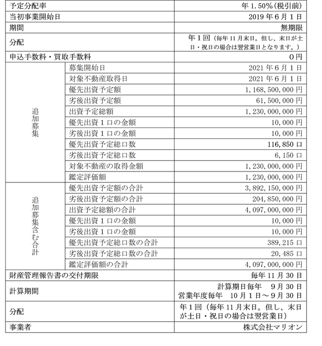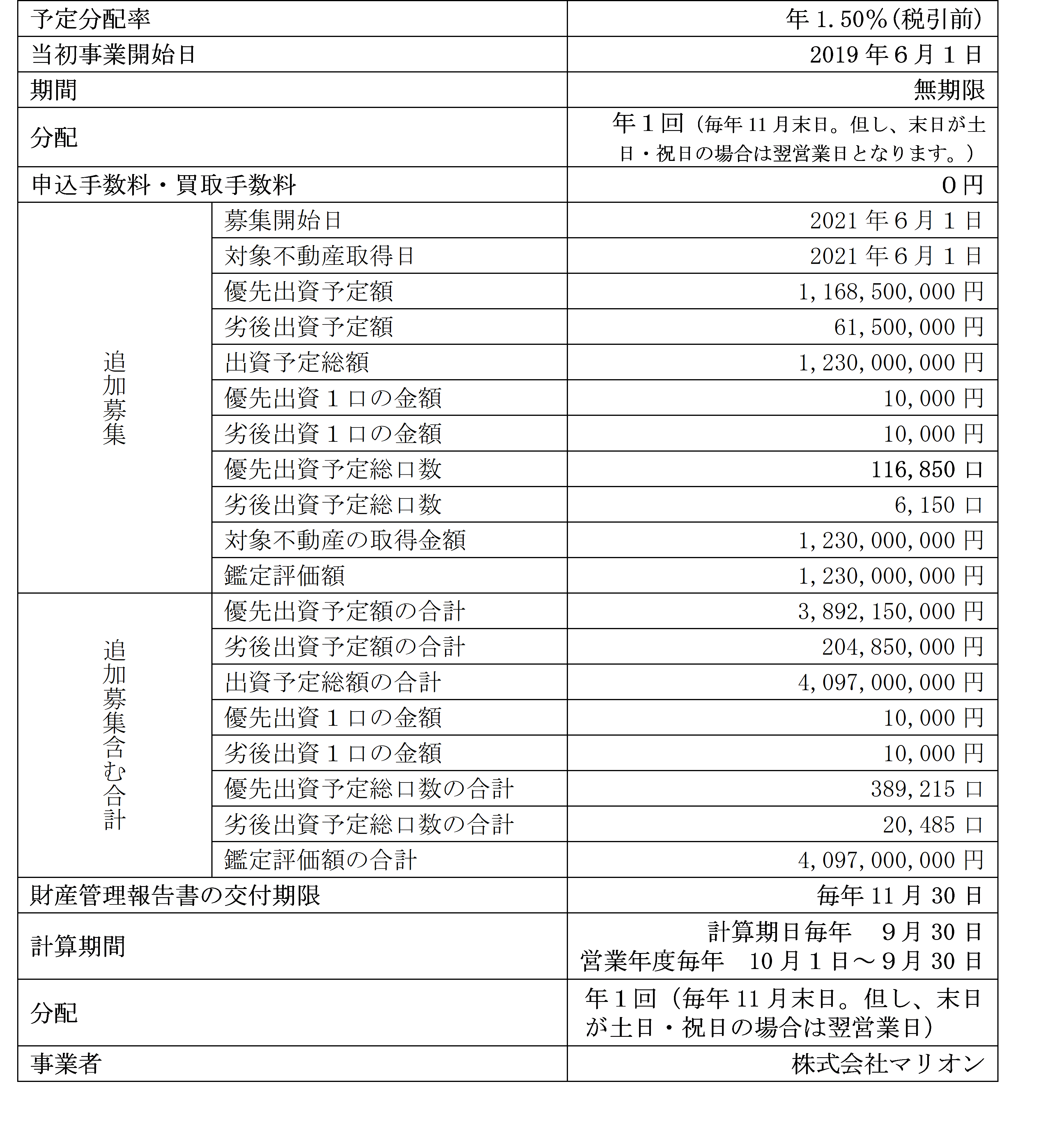不動産賃貸関連サービスの株式会社マリオン(本社:東京都新宿区、代表取締役社長 福田敬司、以下「当社」)は、お金 第3の置き場「i-Bond(アイボンド)」の対象不動産取得に伴う第6回追加募集を6月1日(火)正午より、i-Bond ホームページ(https://www.i-bond.jp/)にて開始いたします。