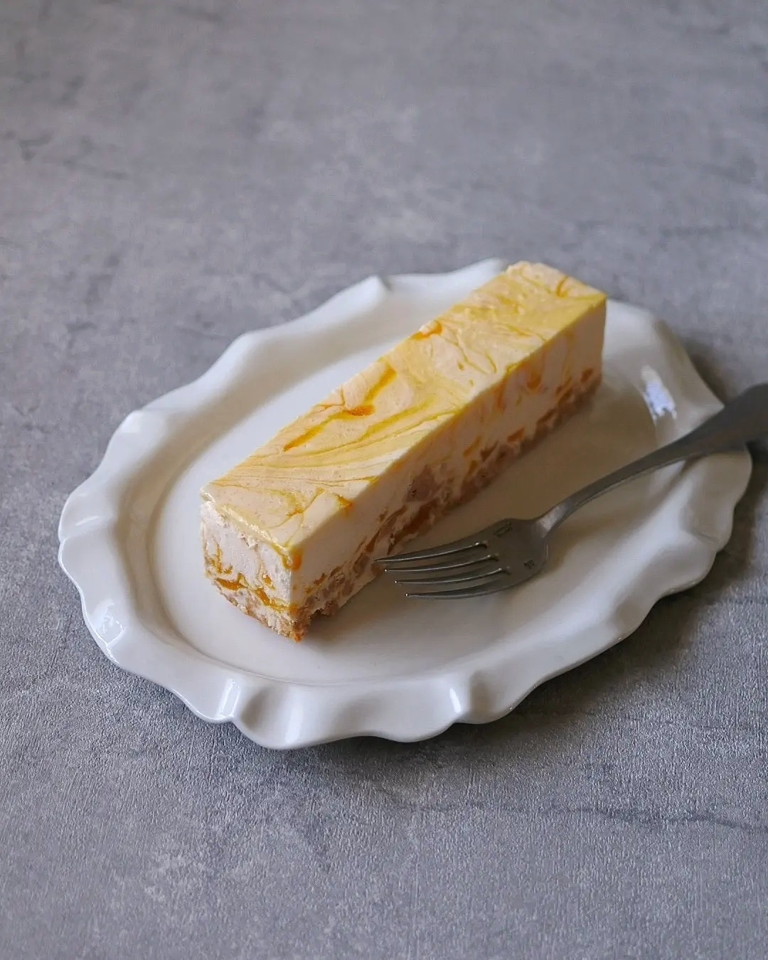食感を楽しめるクッキー生地にコクを楽しむベイクドチーズ、ミルキーなレアチーズムースの2層が口の中でひとつになり、とろけるチーズケーキです。