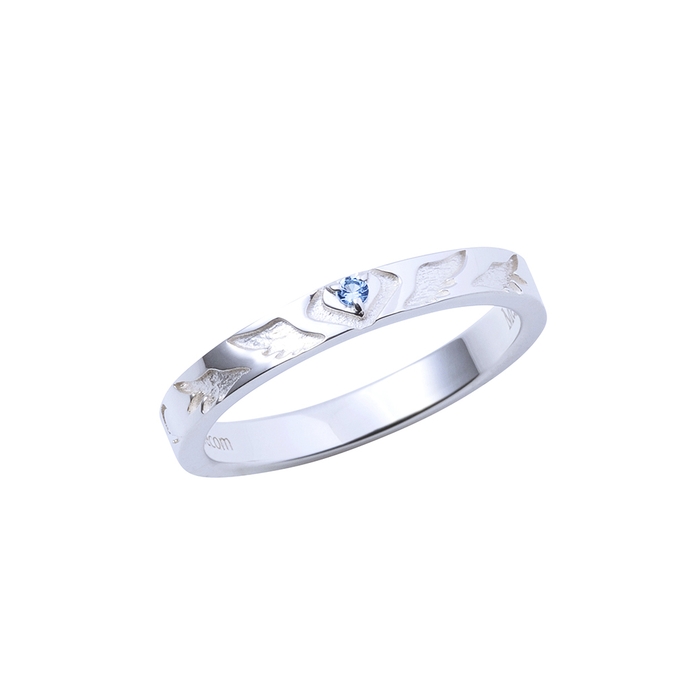 ストレートタイプのリングに陣営マークの柄を取り込み、イメージカラーストーンをセット。リング内側にはキャラクターの名前を英字で刻印しました。