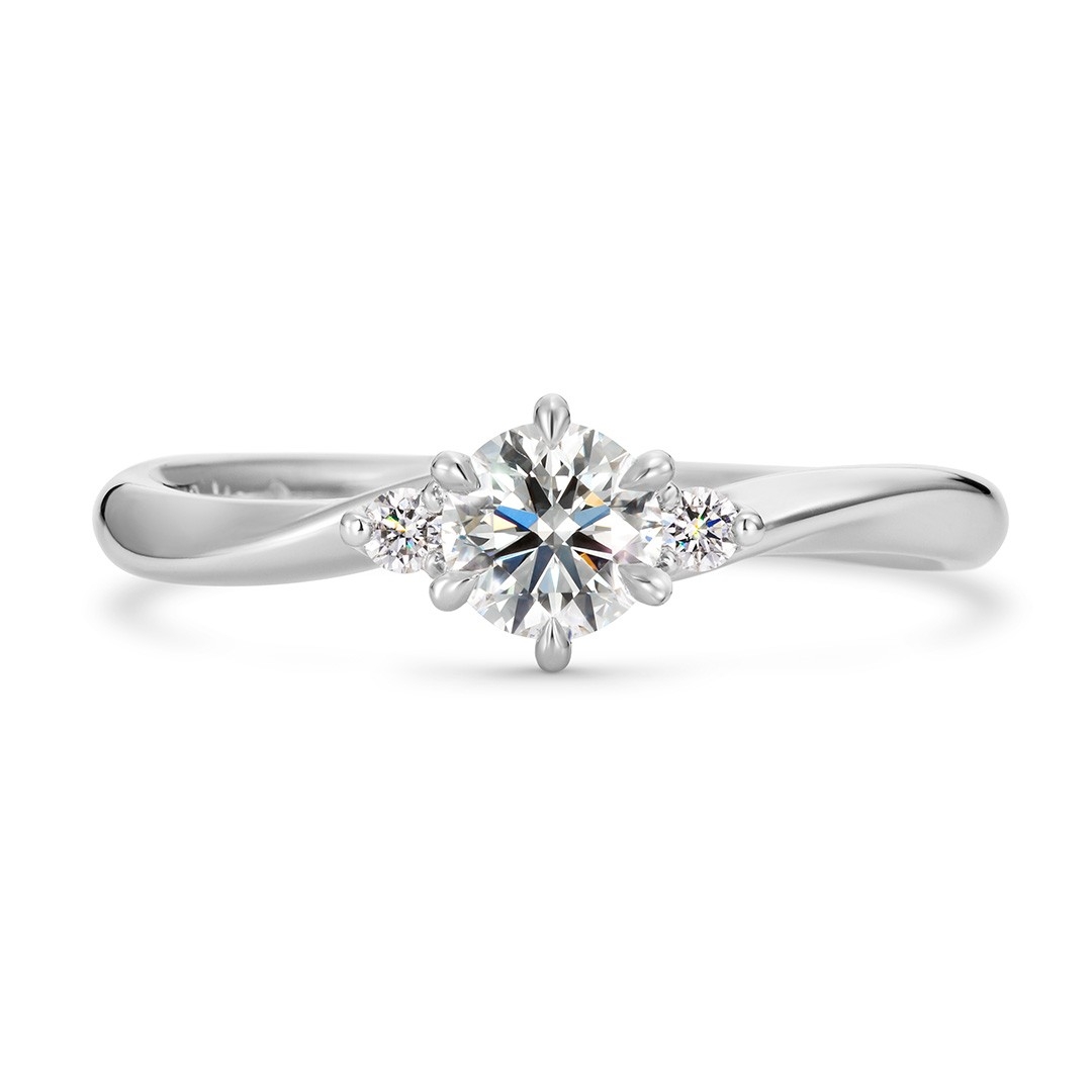 エレガントな曲線が印象的な、優美な婚約指輪。左右対称にセッティングした2つのダイヤモンドが静かな存在感と上質なきらめきを添え、どの角度からも凛とした表情を感じられます。美しい流線形のデザインに、心地よく流れる時間が穏やかに続いていきますよう、願いをこめて。