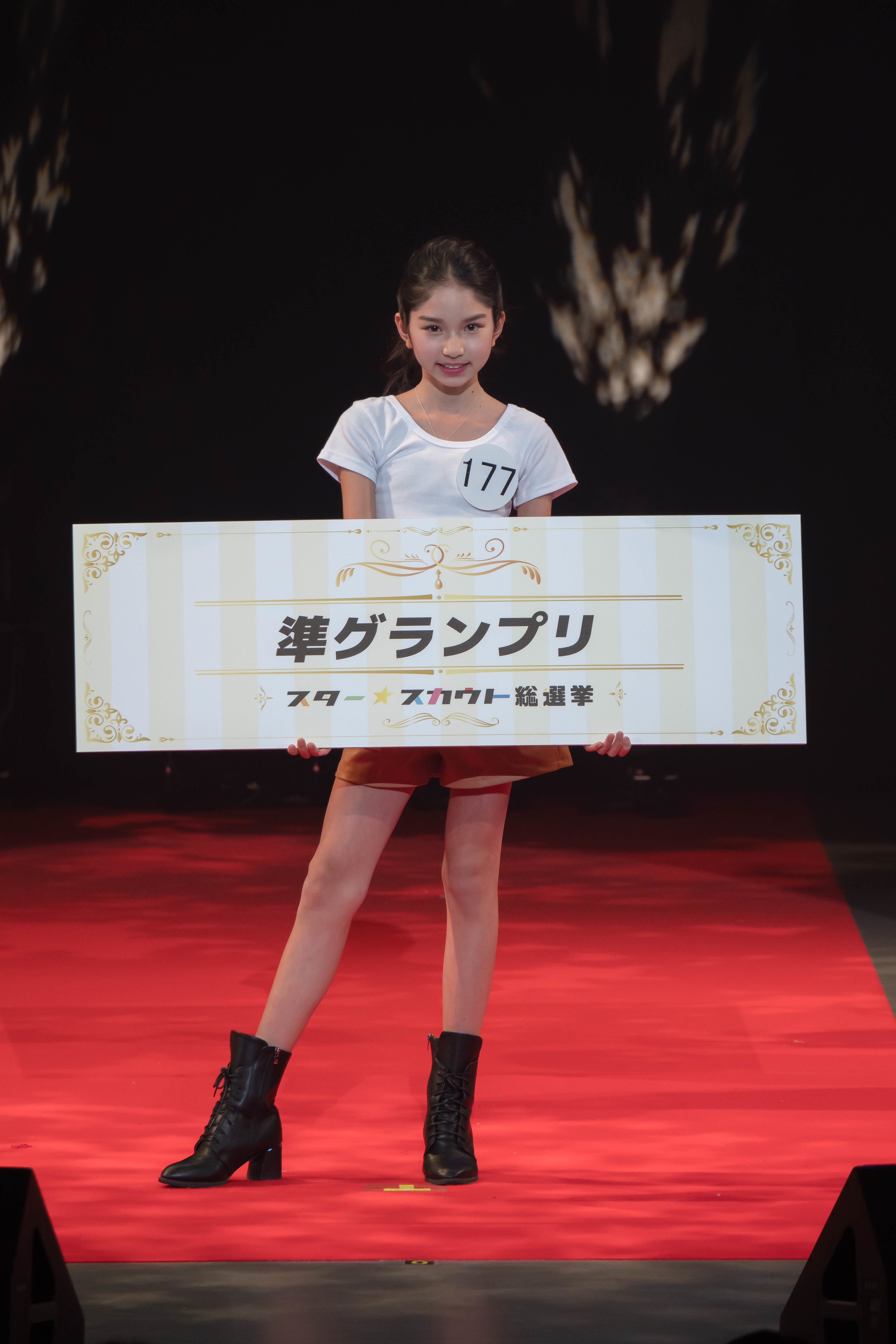 同じく準グランプリの新宅 愛芭さんは「今の気持ちは最初は選ばれるかどうか心配だったんですけど選ばれた時は涙が出るほど嬉しくて胸がいっぱいです。これからも大きなステージに立てるように頑張りたいです」と5年生とは思えぬスラリと伸びる脚でステージに立ち、声を震わせながら挨拶をした。