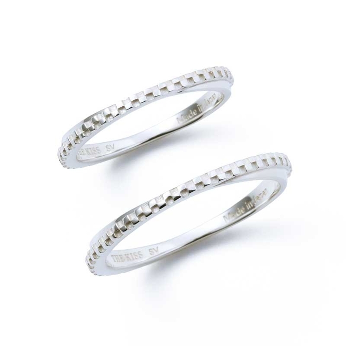 ふたりの出会いと永遠を意味する「Crossing」シリーズに「市松模様」をデザインしたペアリング。