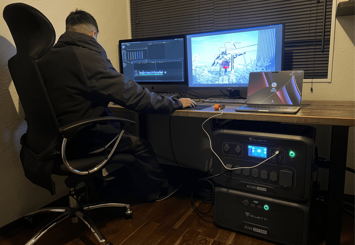 ご紹介したEP500とAC300にUPS機能が付いており、停電時は瞬時にバックアップ電源からの給電に切り替わり、大切なデータや家電を守ることができます。アプリにも対応しているので、スマートフォンから簡単に機器をコントロールすることができます。バックアップ電源とソーラーパネルで、今すぐクリーンなエネルギーを使うことができます。