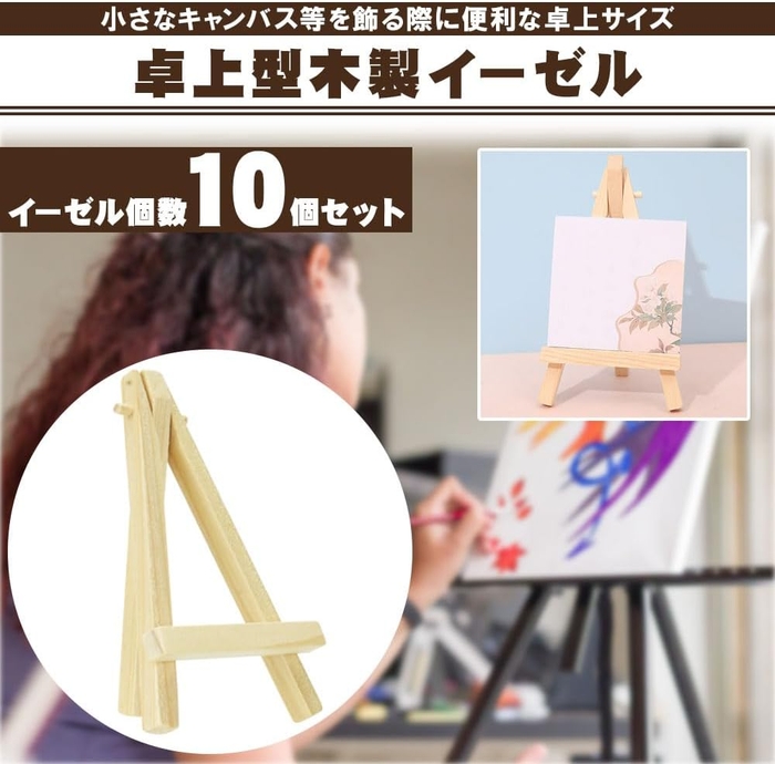 温かみのある木の質感が魅力の木製ミニイーゼルです。主張しすぎないナチュラルなデザインにより飾るアイテムの魅力を引き立ててくれます。リビング・寝室・書斎・玄関など複数箇所への設置いただけるよう10個セットでご用意致しました。イベント出店や店舗ディスプレイにもオススメです!