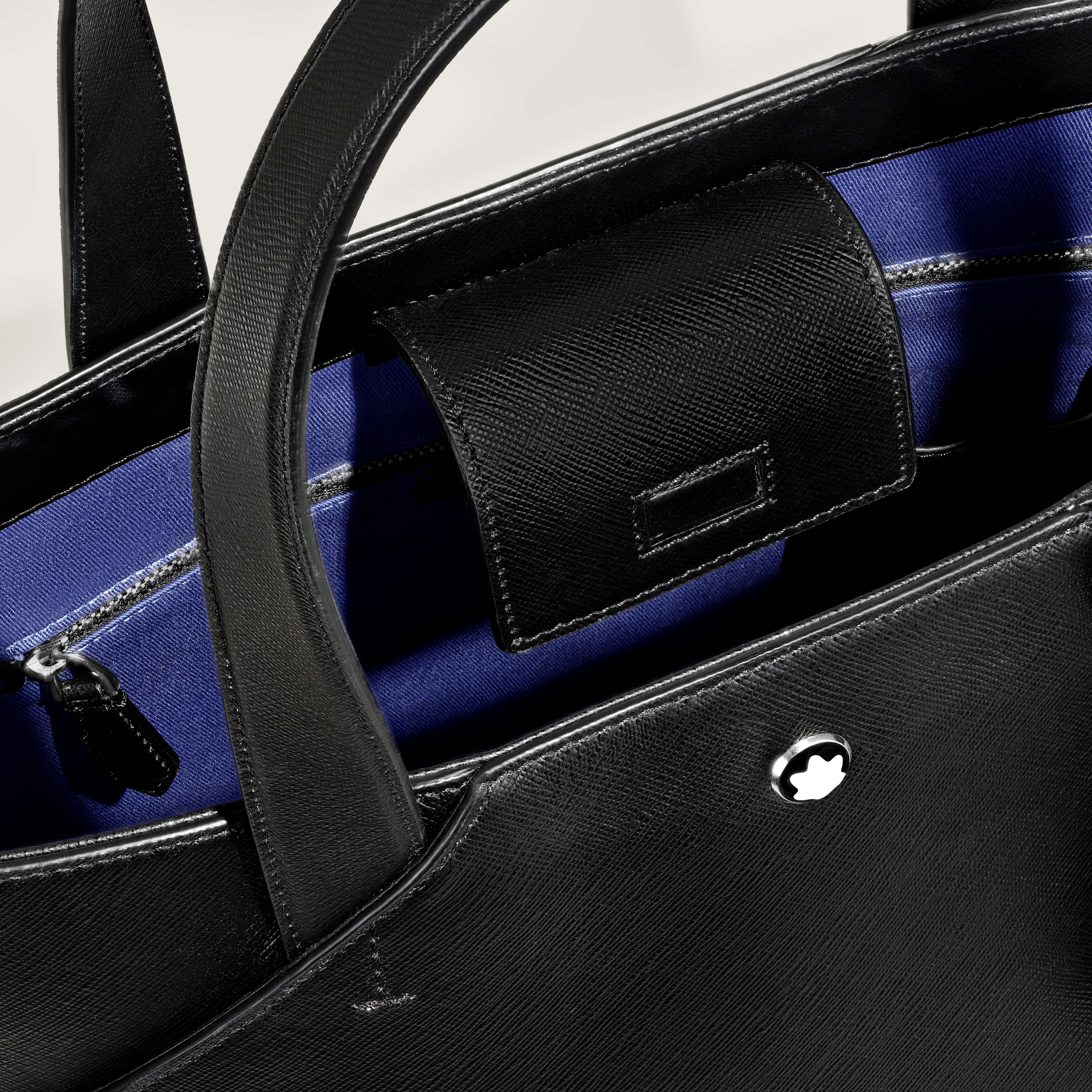 ディテールには、筆記文化を推奨するモンブランならではの発想で封筒やペン先の形状を取り入れ、ブラックのバッグに採用されたブルーのライニングはインクを想起させモンブランのDNAを表現します。内側のジップ式ポケットや筆記具用ループ、マグネット式のフラップなど、実用的な機能が数多く備えられ、ビジネスシーンをはじめ休日のお出かけにも最適なトートバッグです。