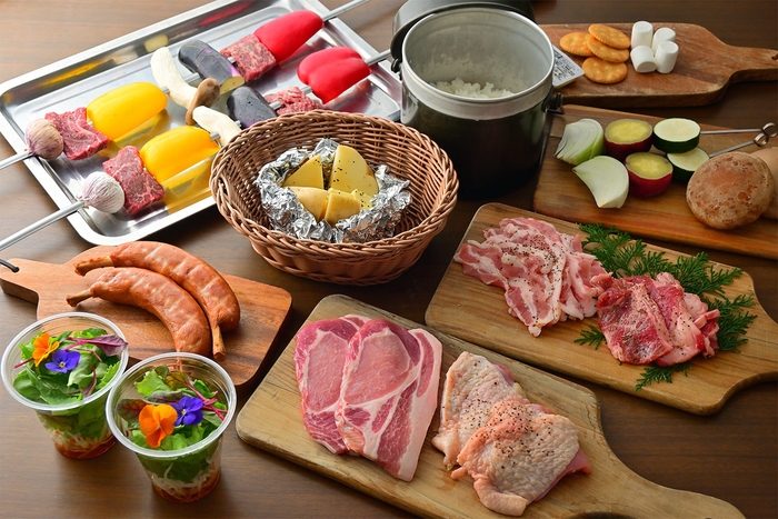 食事は群馬県の厳選食材を堪能いただける自慢のバーベキューをはじめ、地ビールやワインなど豊富なメニューをご用意。