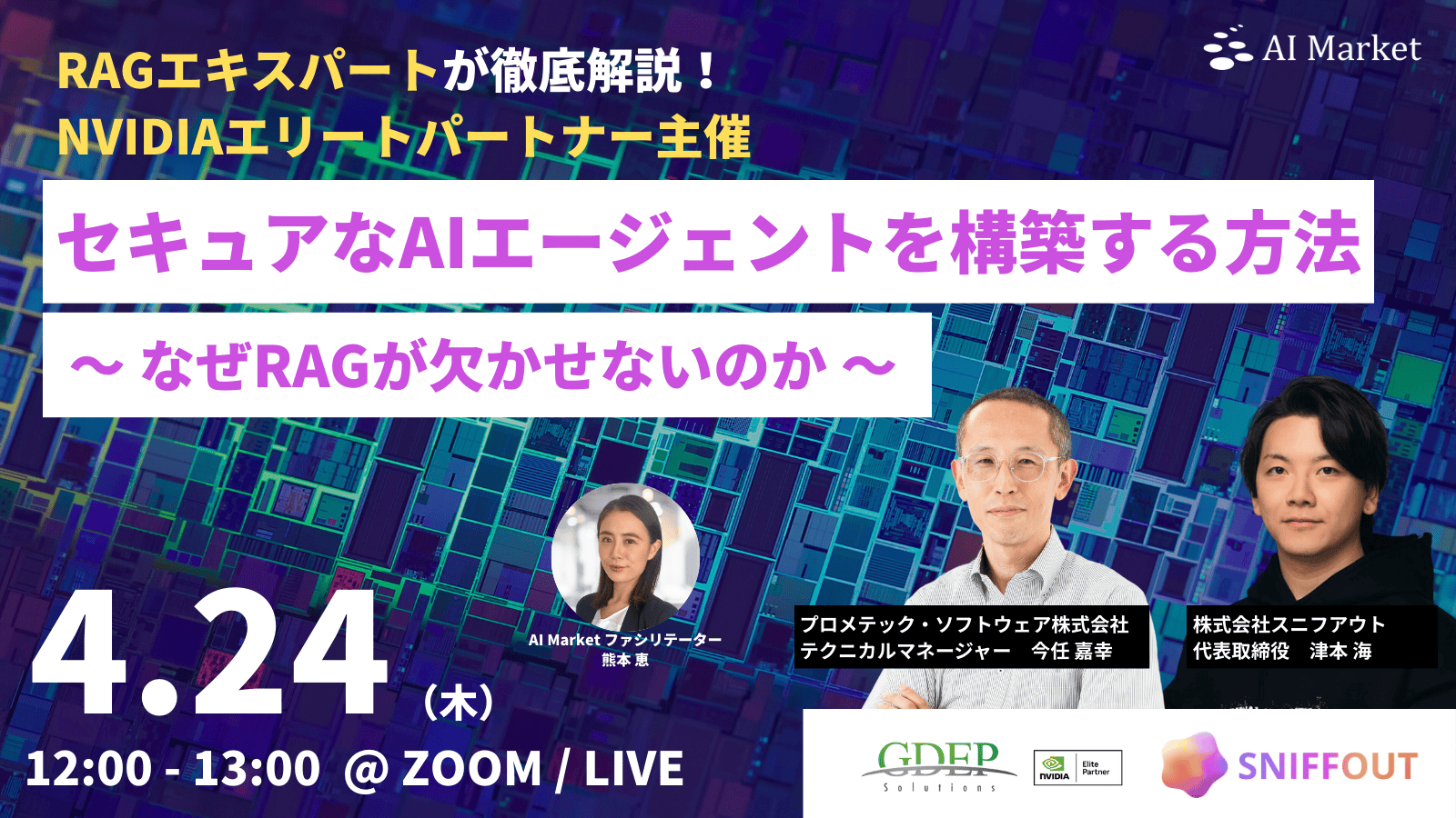 【4/24開催ウェビナー】RAGエキスパートが徹底解説! NVIDIAエリートパートナー主催! セキュアなAIエージェントを構築する方法
