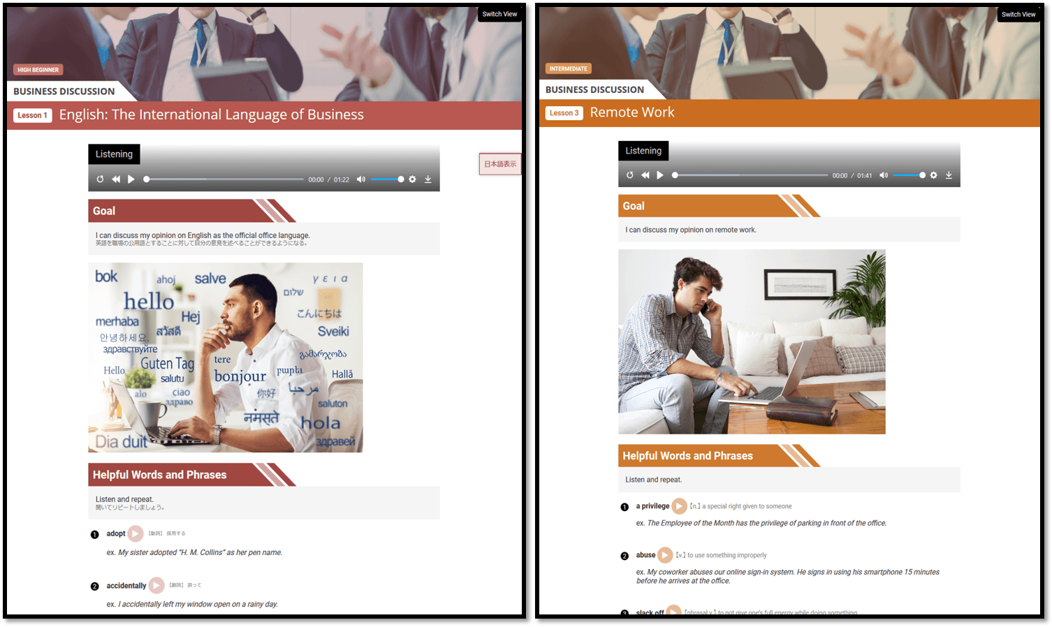 ビジネス英会話コースを利用中の方のみご利用いただけます。