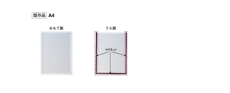 3辺にマグネットがついているため、縦向き・横向きどちらでも掲示可能。