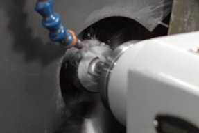 加工精度は真円度1μm,同軸度1μm,平面度1μm,平行度±1μm、材質はSS、SK3、SUS、純チタン、64チタン、インコネル、ハステロイなど幅広く対応。