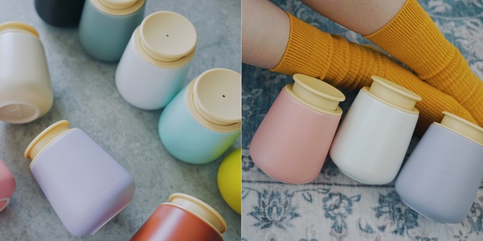 美濃焼技法で作られた磁器の肌はセミマットの質感で、9色の豊富なカラーバリエーション(ダークブラウ ン、オレンジブラウン、イエロー、スノーホワイト、アイボリー、オリーブグレー、ミントブルー、ライラック、サクラピンク)から選べます。「mino雫」は300mlの大容量ながらコンパクトで、かわいいコロンとしたシルエットが特徴です。 その癒しのシルエットと彩りが、日常を北欧モダンな空間に変えてくれます。