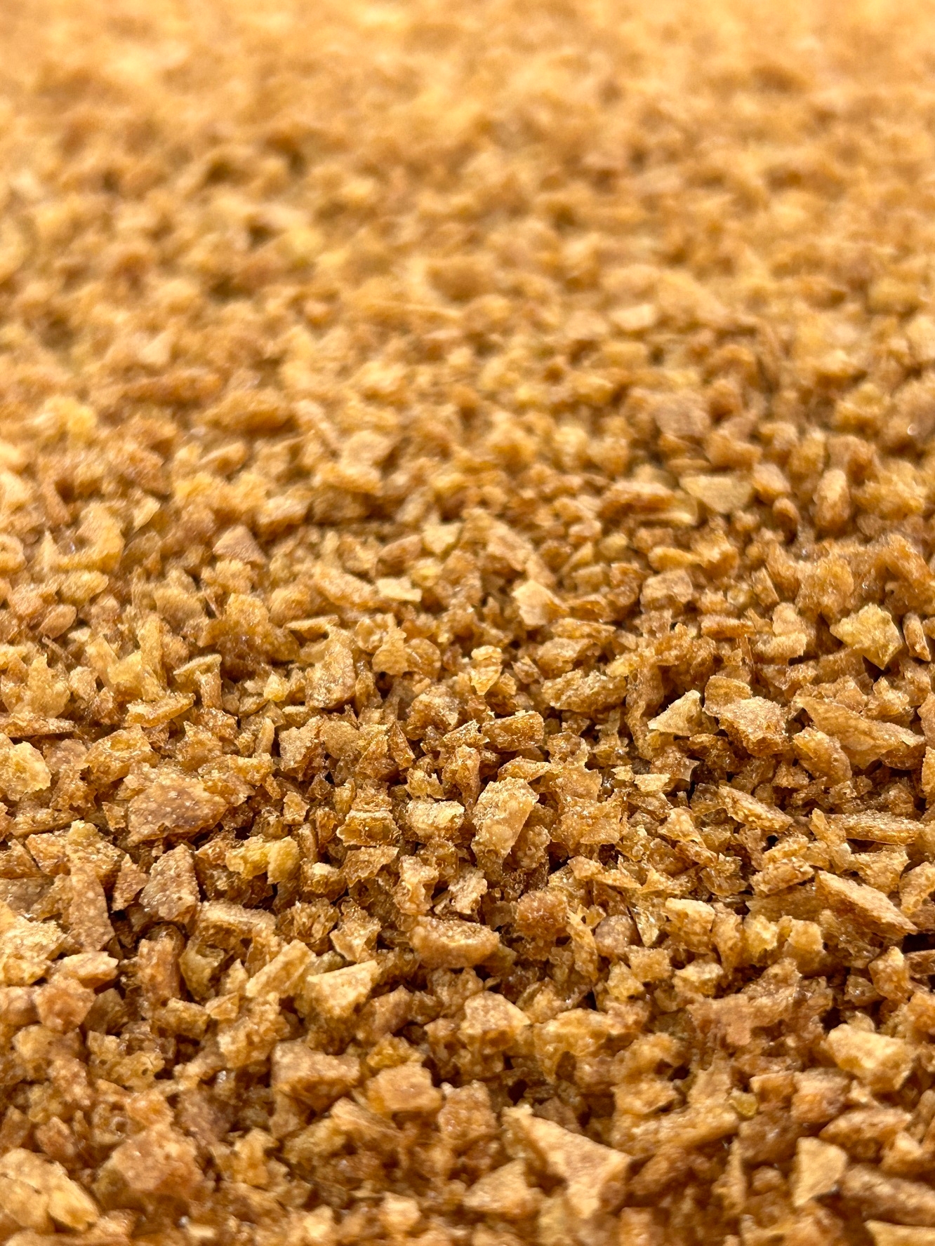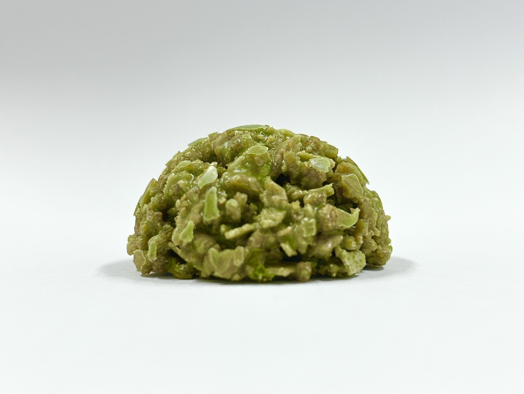 米粉を使って作られた生八つ橋生地は、北海道産の小麦粉やビート上白糖などと一緒に焼き上げられ、カリカリとした食感のパフに生まれ変わります。そして、風味豊かな抹茶チョコレートと合わさり抹茶チョコレートクランチに加工されます。