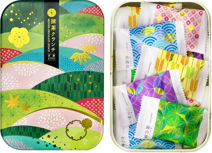 海外へ日本の伝統文様をお菓子で発信 あの八つ橋がカリカリ食感のパフに! 「抹茶クランチ缶」2月1日(木)より発売開始!!