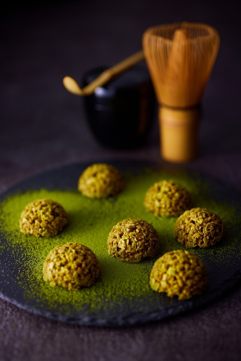 京都銘菓「生八つ橋」を加工したパフと抹茶チョコレート