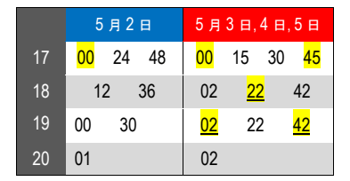 【5月3日、4日、5日/土曜・休日ダイヤ】