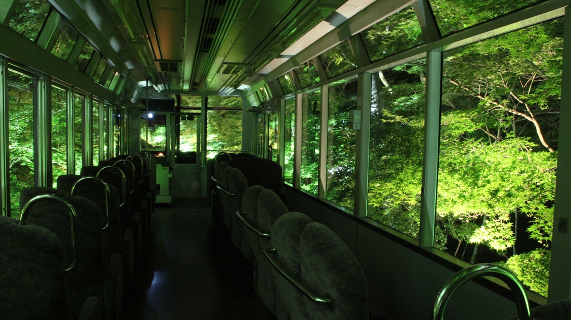 今年も貴船神社で開催される「新緑ライトアップ」に合わせて、5月2日(木)~5日(日・祝)の4日間に「もみじのトンネル」区間で「青もみじ新緑のライトアップ」も開催。同区間を通過する列車は車内の明かりを消してゆっくりと走ります。